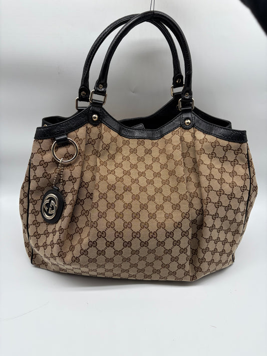 Gucci Sukey Tote Bag Large GG Monogram Beige Schwarz