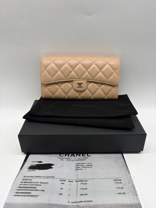 Chanel Matelassé Caviar Leder Long Wallet beige