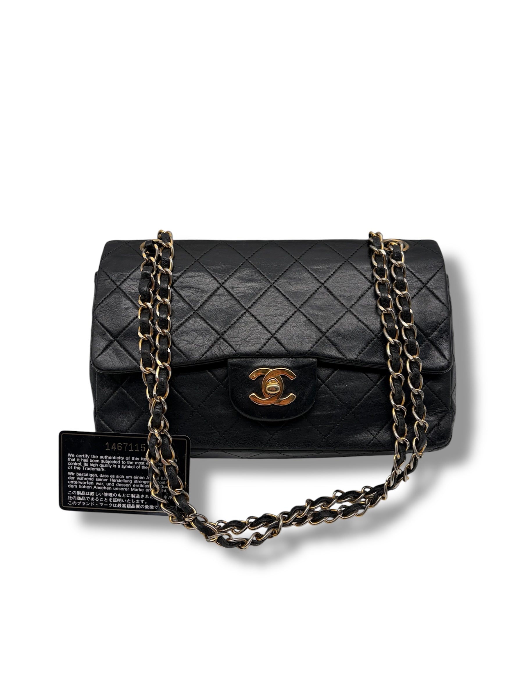 Chanel Double Flap Small 23 – Schwarzes Lammleder Designer-Bag