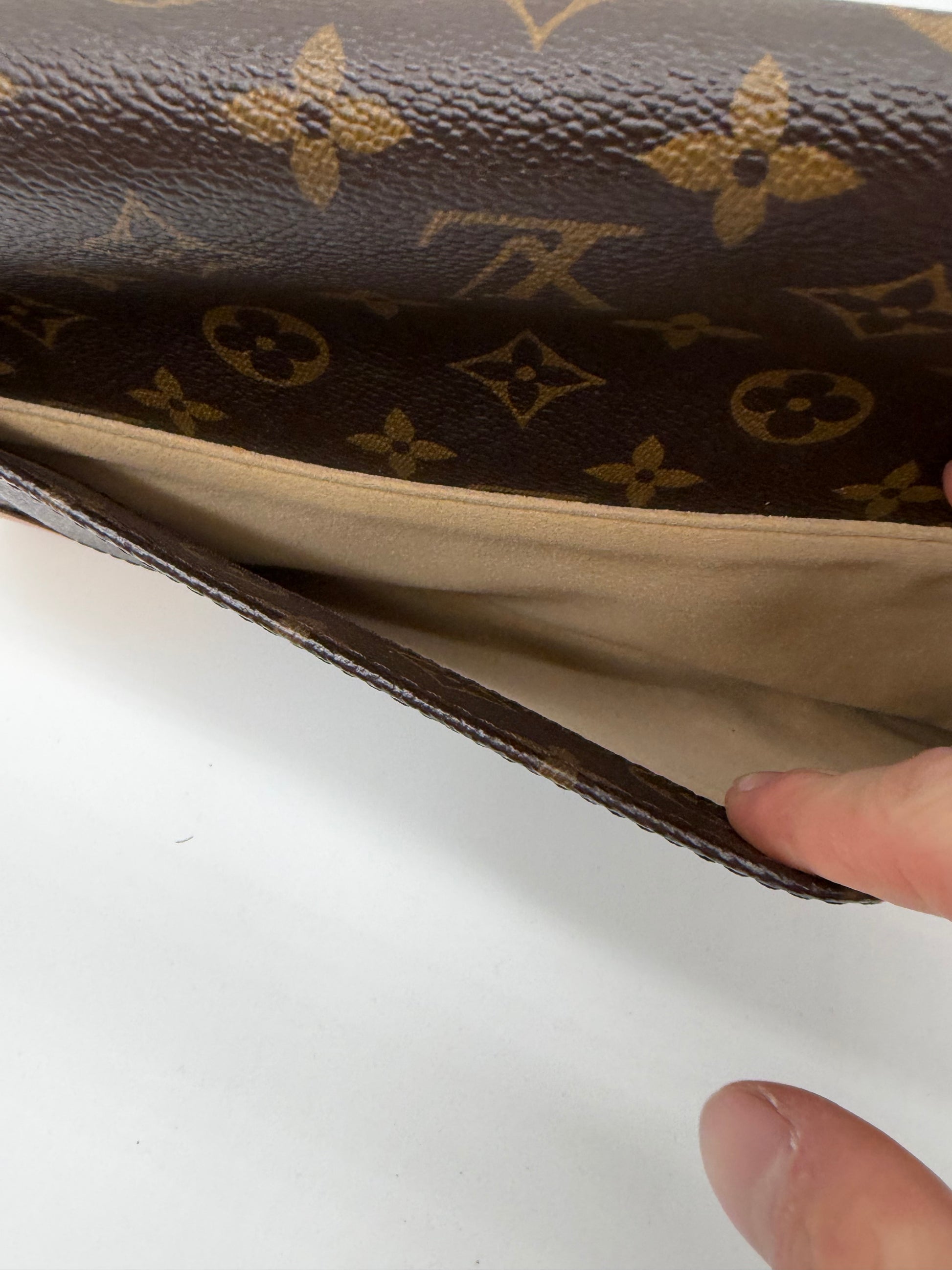 Material: Beschichtetes Monogram Canvas mit Natur-Kalbsleder-Details & goldfarbener Hardware