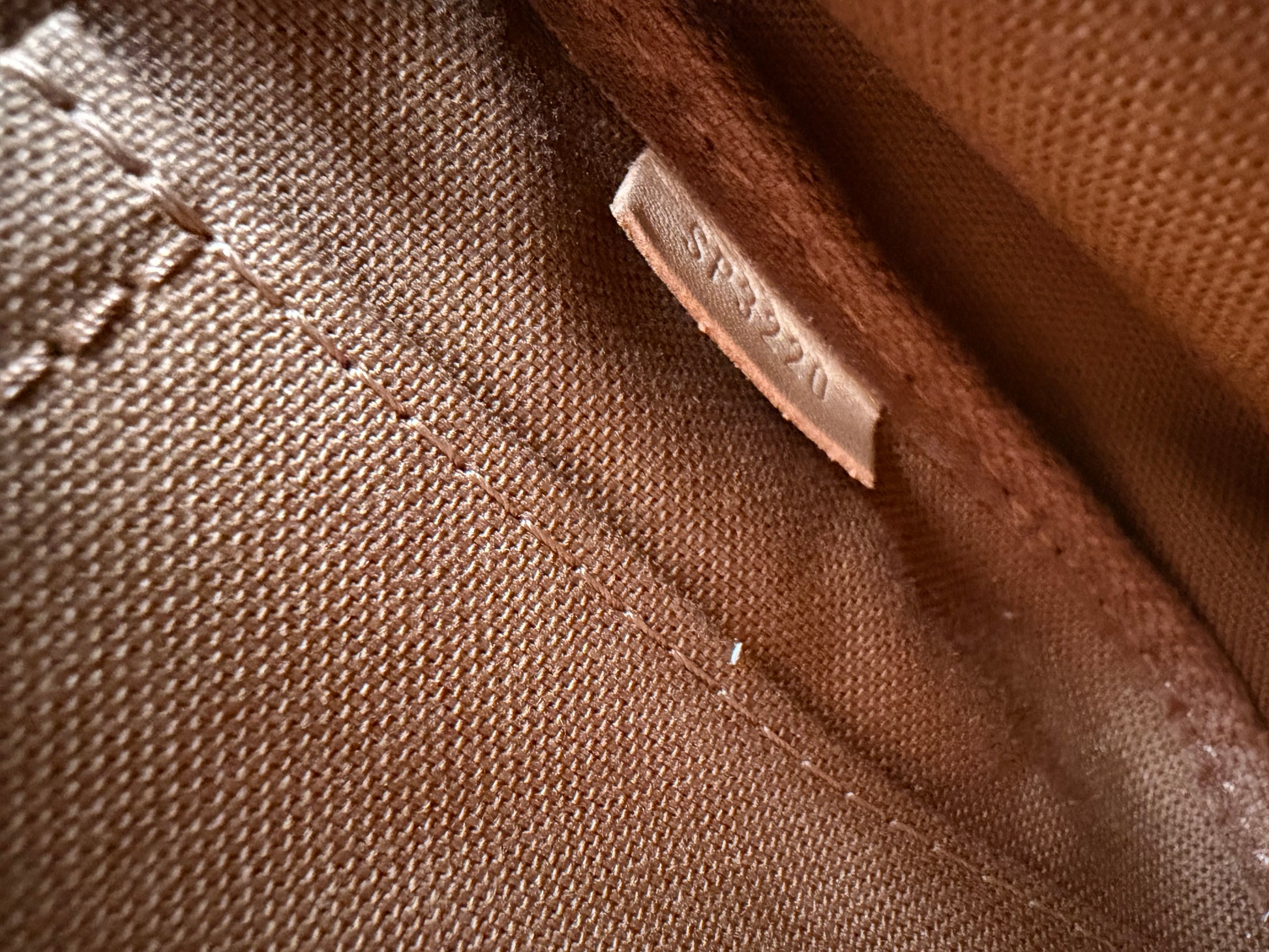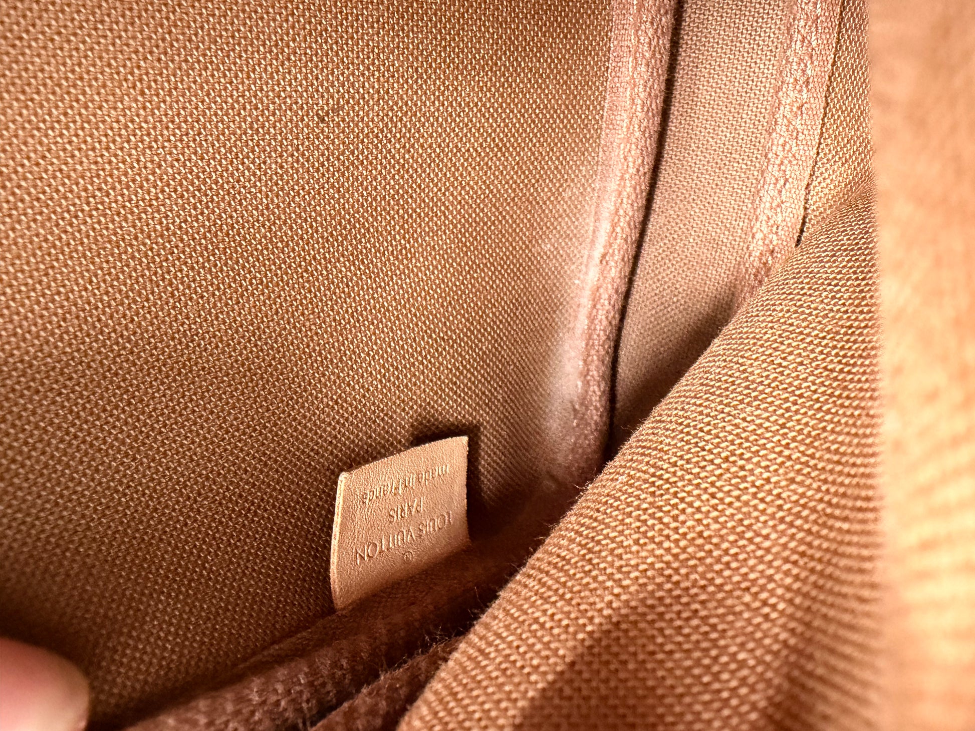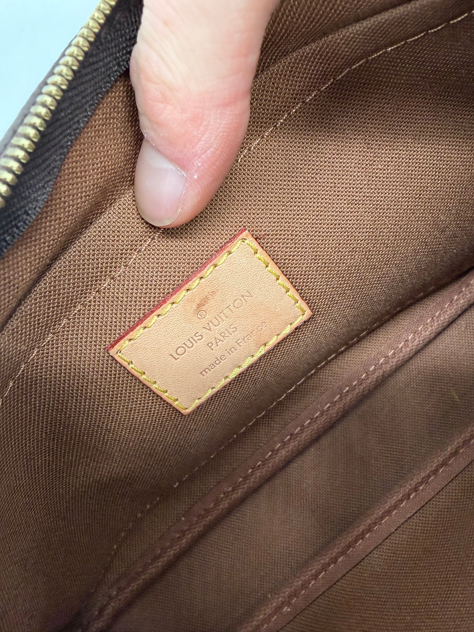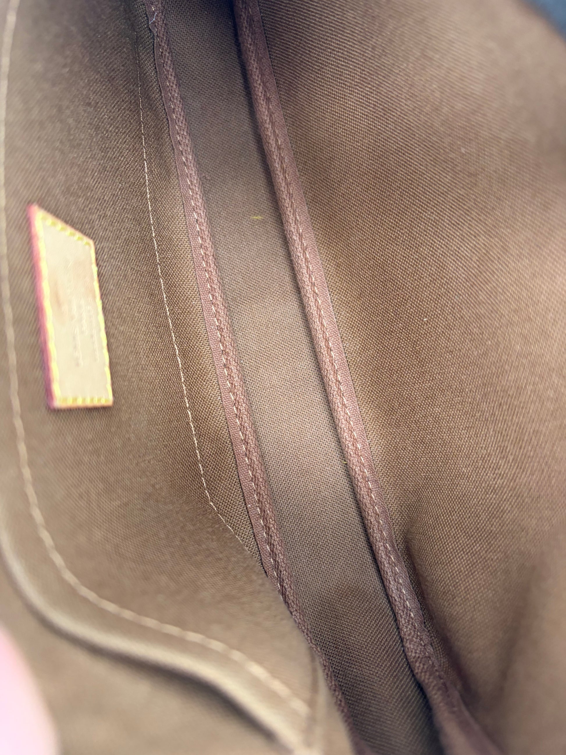 Material: Beschichtetes Monogram Canvas mit naturbelassenem Lederbesatz